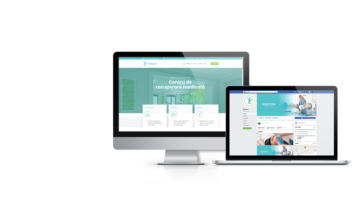 Am început cu logo-ul, în care simbolul copilului vioi și sprinten reprezintă exact visul Kinetera. Elementul central este „protejat” de un cerc, folosit ca metaforă a grijii și perfecțiunii echipei în tratarea celor mici.